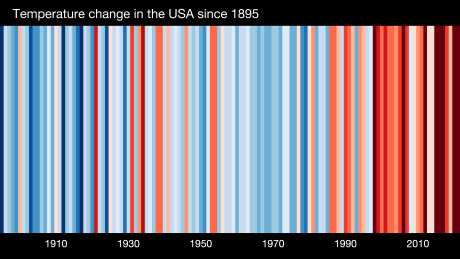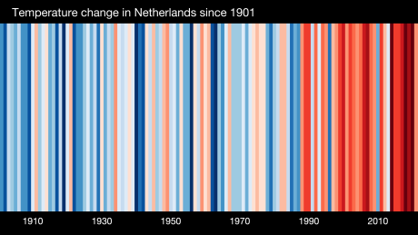 Pictures speak louder than words. Climate change visualized with 'warming stripes'.